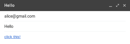 Gmail - 링크 삽입 메일을 받은 사용자가 click this!를 클릭하면 해당 주소로 이동하여 name 값이 바뀐다.