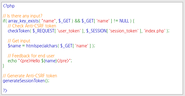 DVWA - CSRF (Security Level: High) - View Source 웹 어플리케이션은 CSRF token을 매 응답마다 랜덤하게 생성하여 hidden 폼 필드를 통해 클라이언트에게 전송하고, 클라이언트는 이전 응답 메시지에 포함된 token 값을 다음 요청 때 포함하여 전송한다. 웹 어플리케이션은 클라이언트에게 받은 요청에 포함된 CSRF token 값을 검산하여 정상적인 클라이언트로부터 온 요청이 맞는지 확인한다.