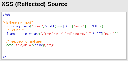 High Level에서는 preg_replace 함수를 사용해 대소문자를 포함한 <script> 태그 사용을 막고 있다.
